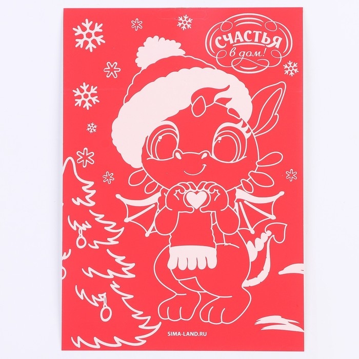 Красная гравюра на новый год «Дракоша с сердечком», с золотой основой, А5