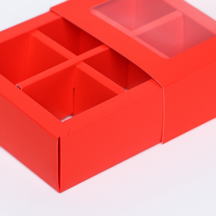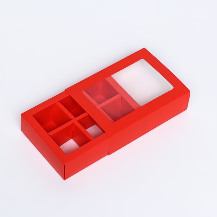 Коробка для 6 конфет, алый, 13,7 х 9,85 х 3,86 см. Кондитерская упаковка