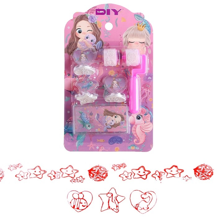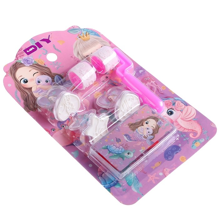 Печать цветная «Русалочка», набор 3 шт., ролик-печать с 2 насадками, штемпельная подушка