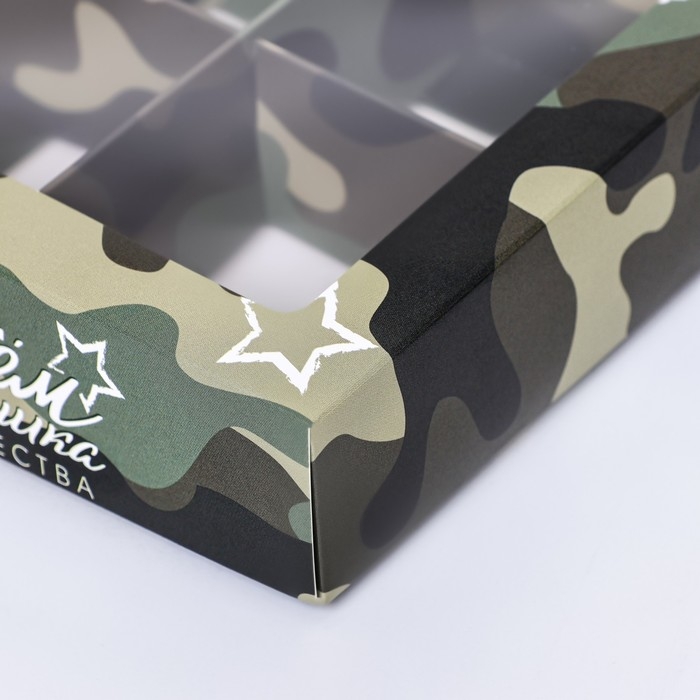 Коробка для 4 конфеты, "Камуфляж" 12,6 х 12,6 х 3,5 см. Кондитерская упаковка