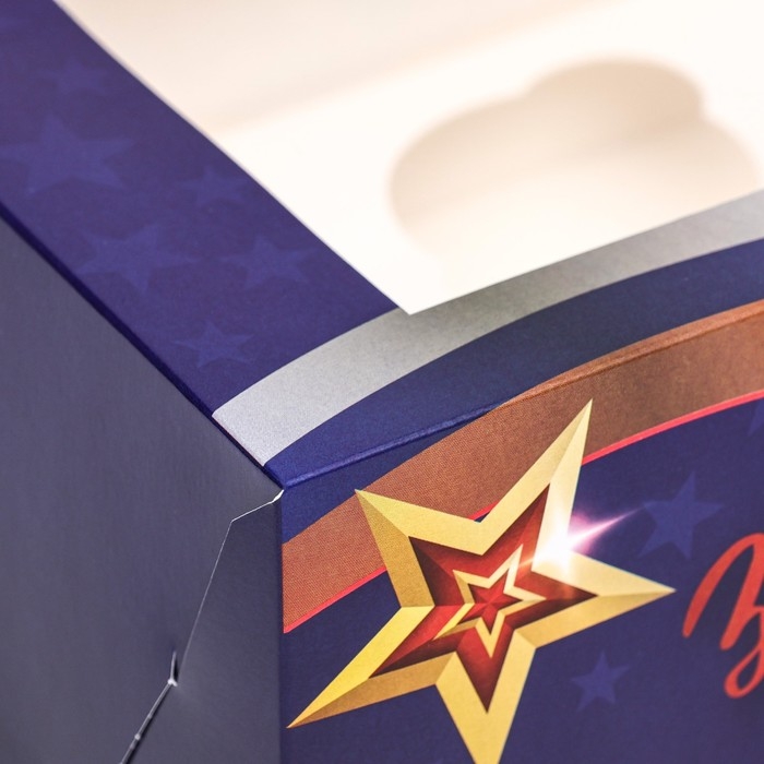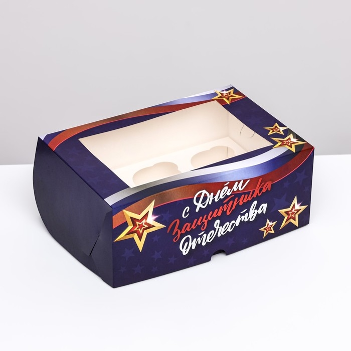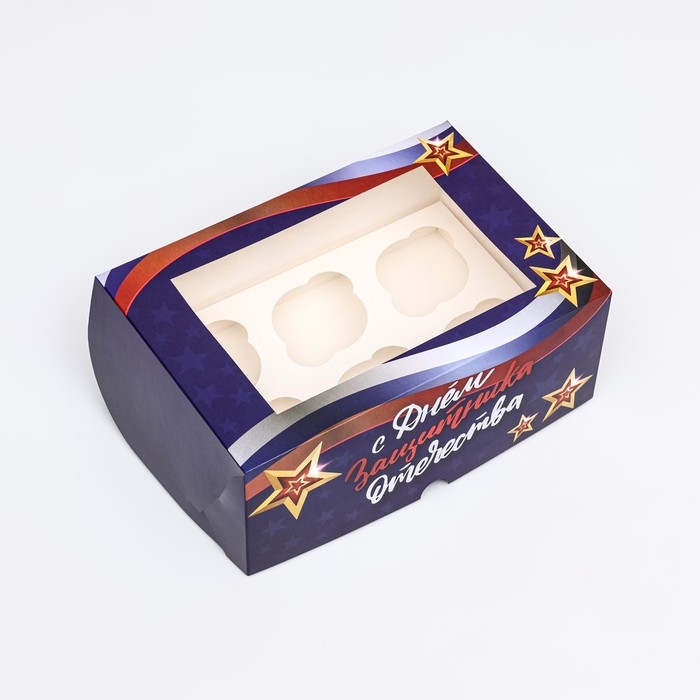 Упаковка под 6 капкейков с окном "23 февраля Звезды", 25 х 17 х 10 см