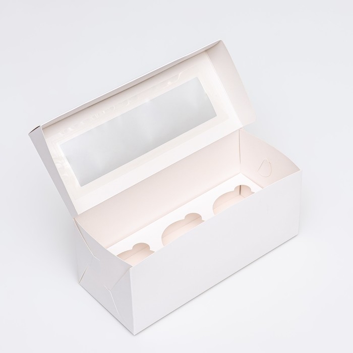 Коробка для 3 капкейка с окном, целлюлоза, 25 х 10 х 10 см