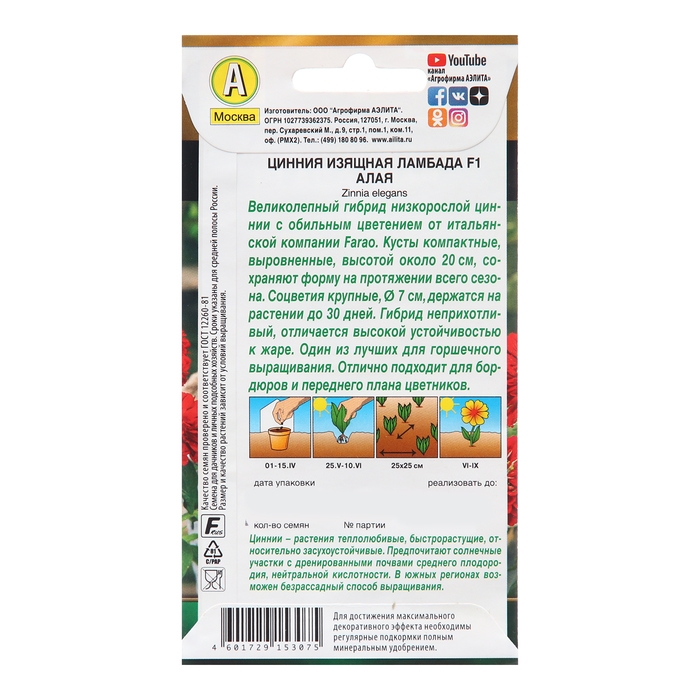 Семена Цинния Ламбада F1 алая Одн Золотая серия Ц/П 12шт