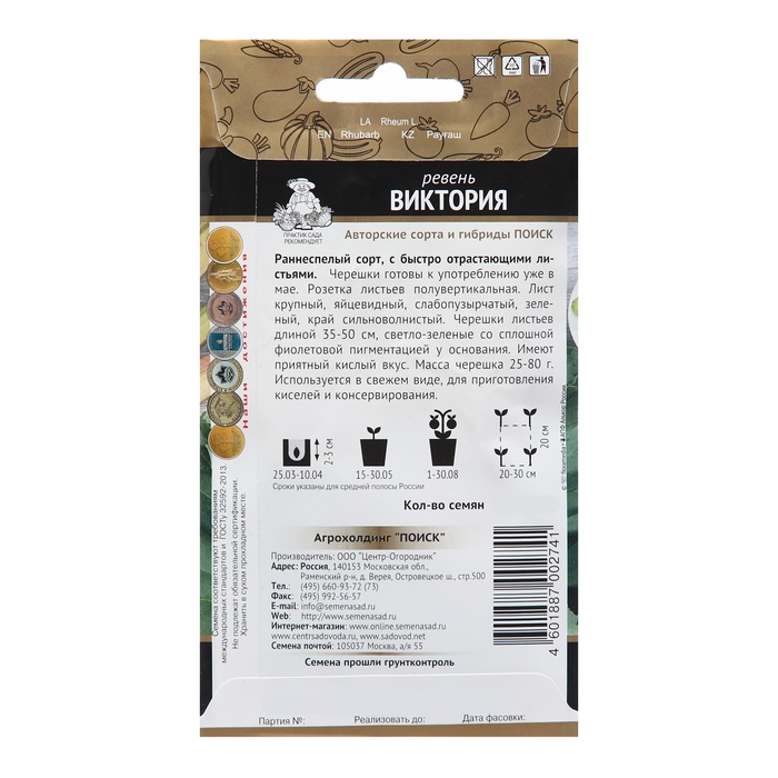 Семена Ревень Виктория /Сотка/ 0,2г/ ранний 25-80г /*600
