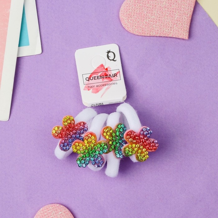 Резинка для волос "Лола" (набор 4 шт) цветочек, d-2,5 см, белый
