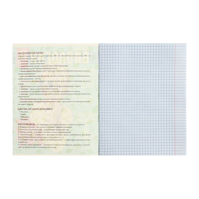 Тетрадь предметная Calligrata TOP "Журнал", 48 листов в клетку Биология, со справочным материалом, картонная обложка, глянцевая ламинация, блок офсет