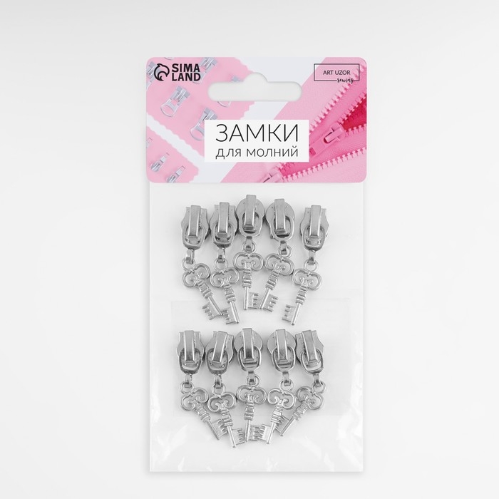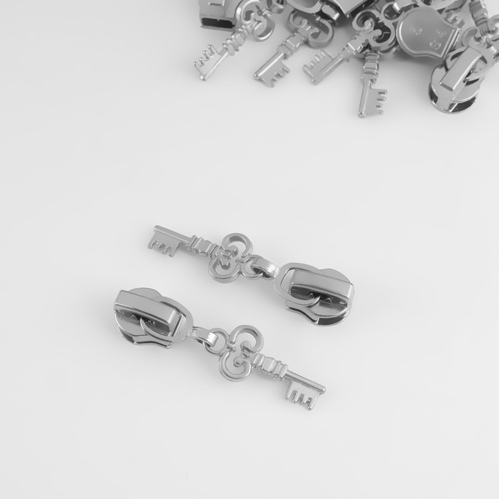 Бегунок автоматический для молнии «Спираль», №5, декоративный «Ключ», 10 шт, цвет никель