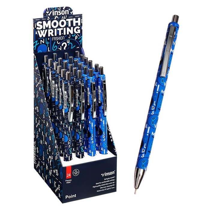 Ручка шариковая автоматическая 0,7 мм, Vinson, синяя масляная, софттач, штрихкод на шт, МИКС