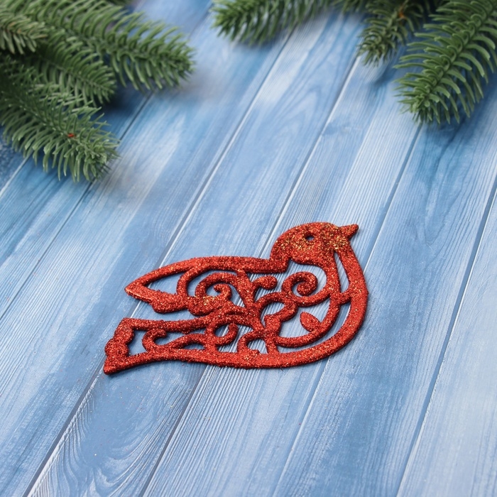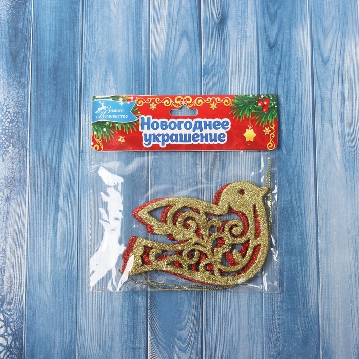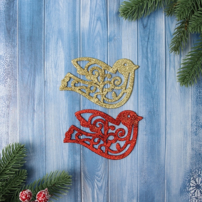Украшение ёлочное "Птичка блеск" (набор 2 шт) 7х9.5 см, красный золото