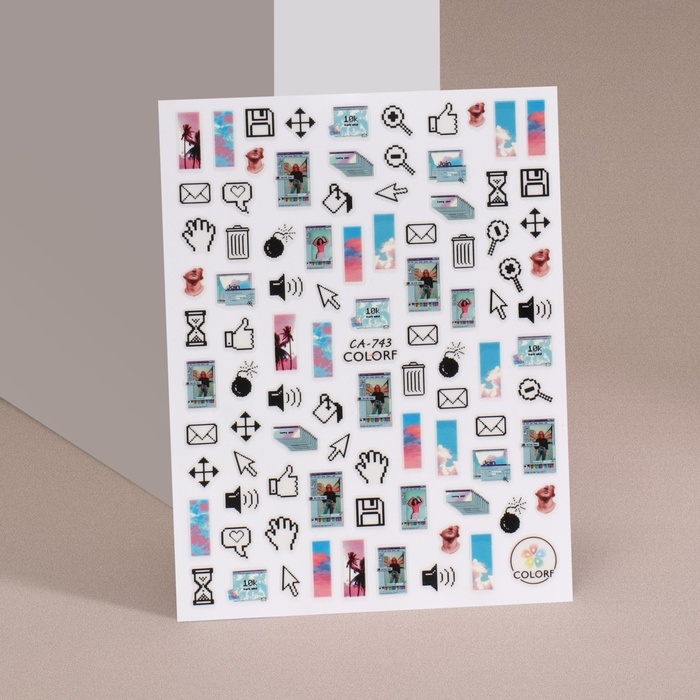 Наклейки для ногтей «Иконки», разноцветные