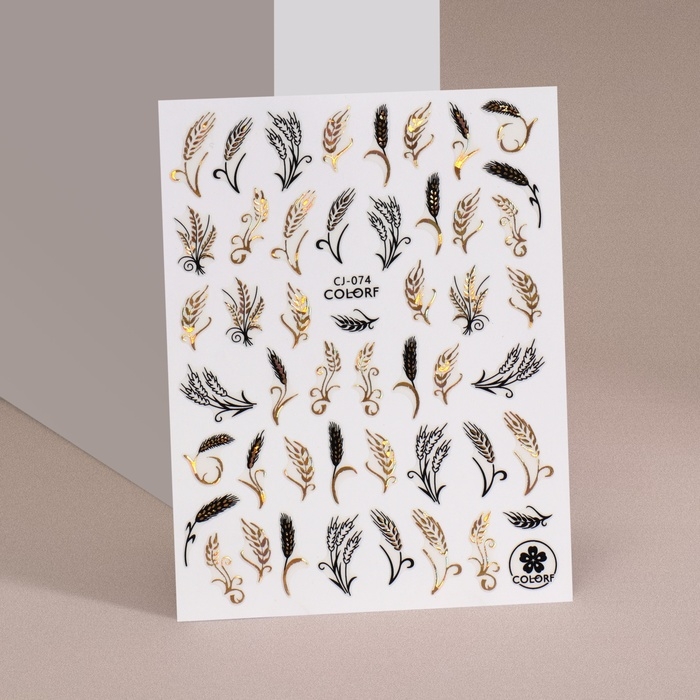 Наклейки для ногтей «Колосья», фольгированные, цвет золотистый/черный