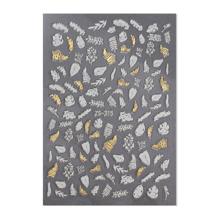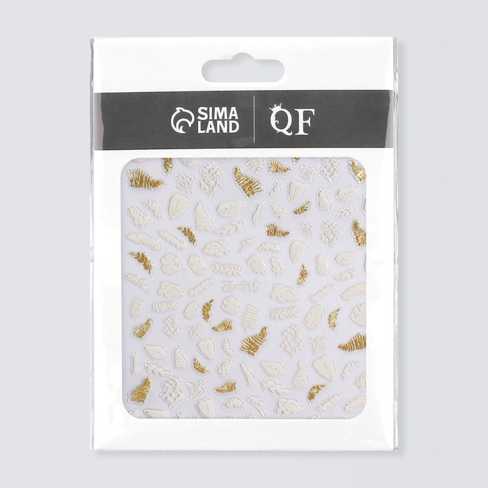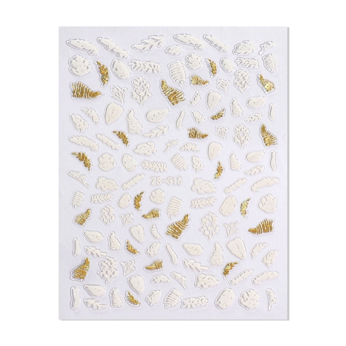 Наклейки для ногтей «Папоротник», цвет белый/золотистый