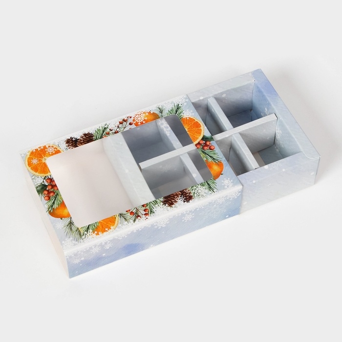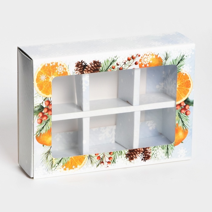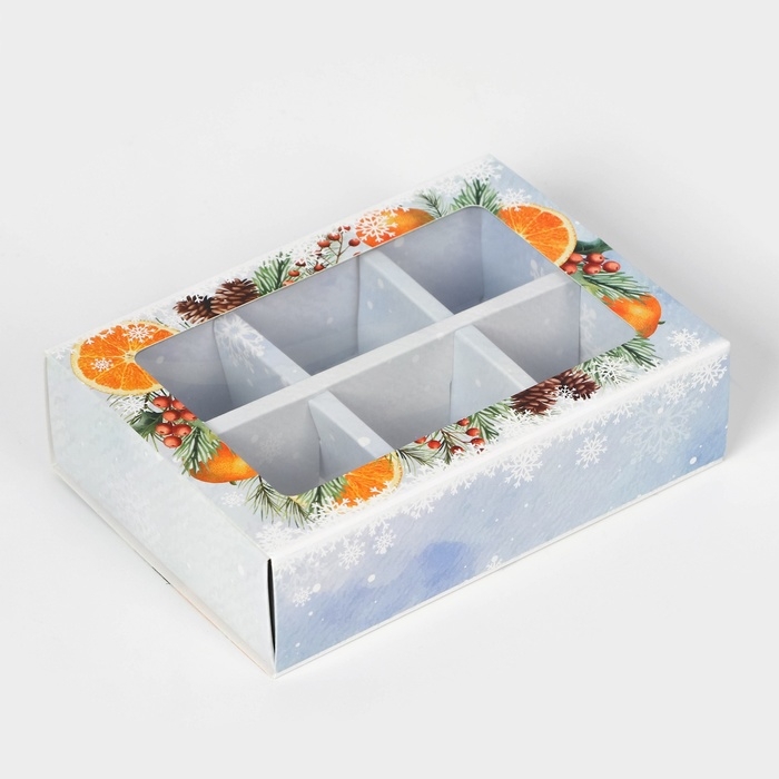 Коробка под 6 конфет "Новогодняя" размером 13,7 х 9,8 х 3,8 см - это прекрасный выбор для упаковки сладостей к празднику. Она выполнена в ярких новогодних цветах, что создает атмосферу праздника и волшебства.