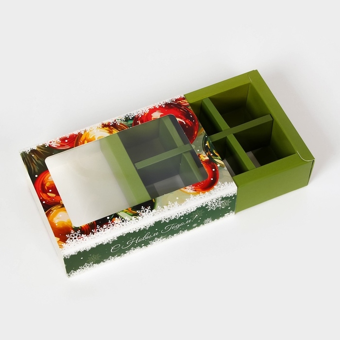 Новый год. Коробка под 6 конфет "Елочные игрушки", 13,7 х 9,8 х 3,8 см, кондитерская упаковка
