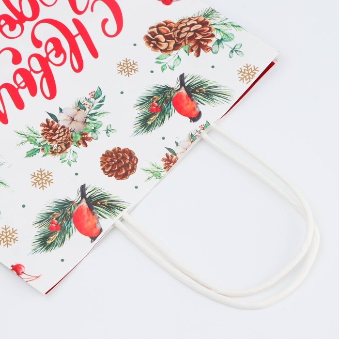 - Новогодний подарочный пакет с ярким, красочным рисунком создаст праздничное настроение.