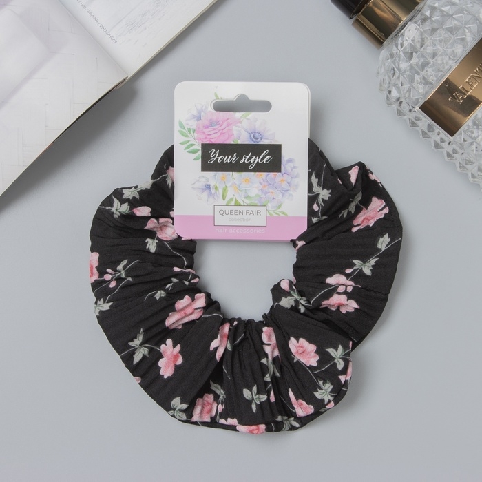 Резинка для волос "Орбита" жатка цветы, 12 см, чёрный