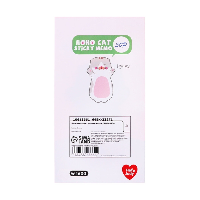 Блок для записей 35мм х 70мм 30л Бело - розовый котик