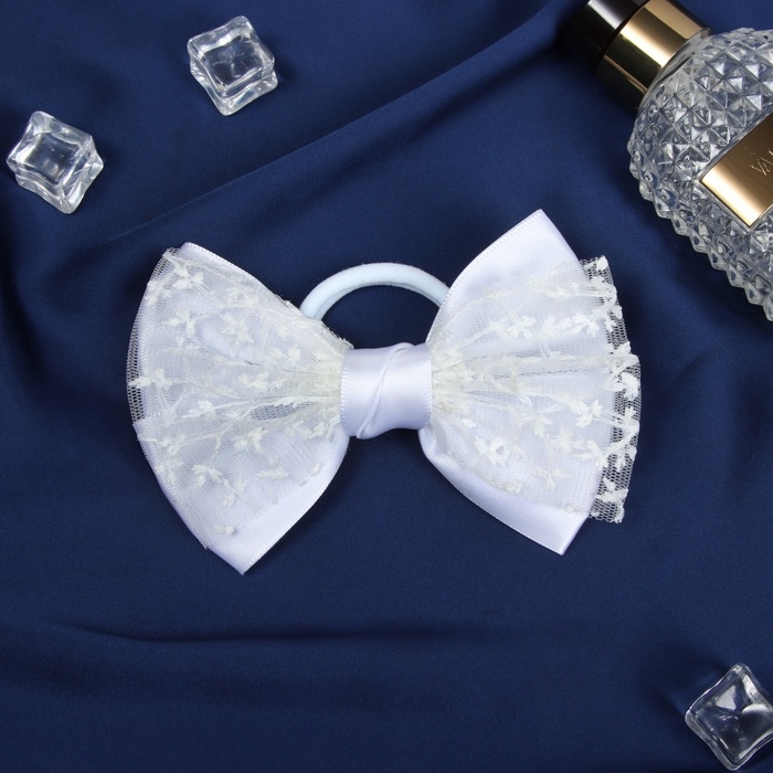 Резинка для волос "Школьница стиль" классика кружево, 12 см, белый