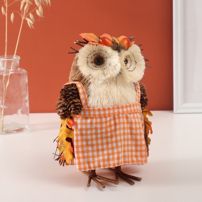 Декор "Сова в сарафане в осеннем венке" 21х13х15 см