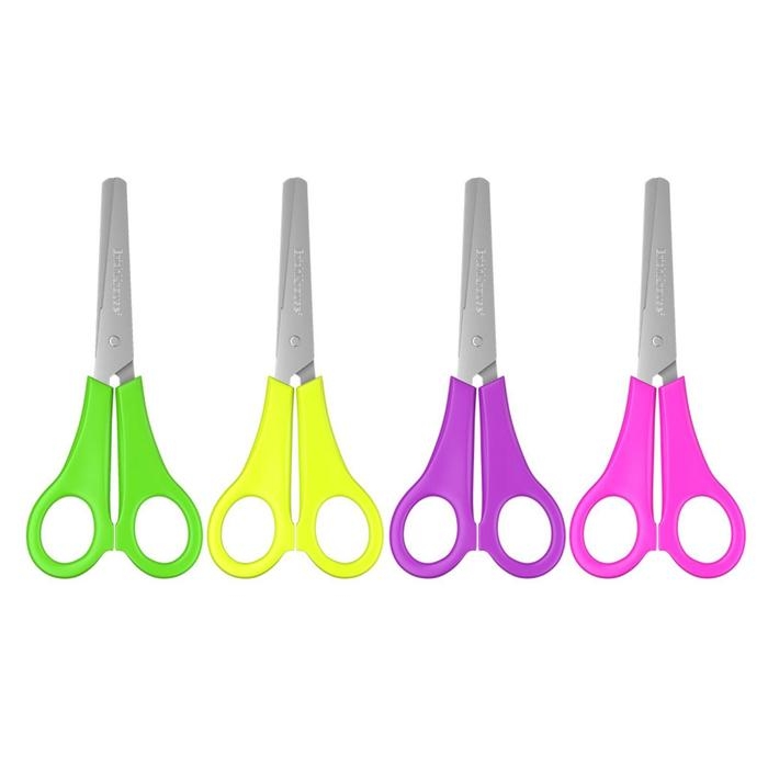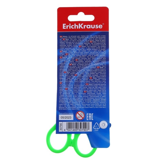 Ножницы с лезвиями из высококачественной нержавеющей стали с безопасными закругленными концами лезвий и линейкой, обеспечивающей точность резки. Не ржавеют. Ручки классической формы изготовлены из ударопрочного пластика. Модель предусмотрена для левшей. Товар поставляется в нескольких вариантах цвета/дизайна без возможности выбора.