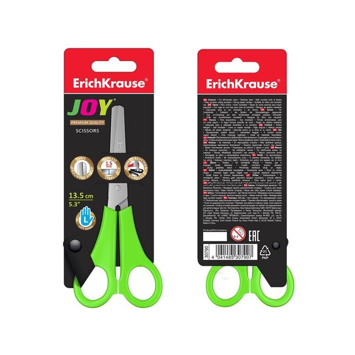 Ножницы детские 13,5 см, ErichKrause Joy, с закруглёнными концами лезвий и линейкой, МИКС