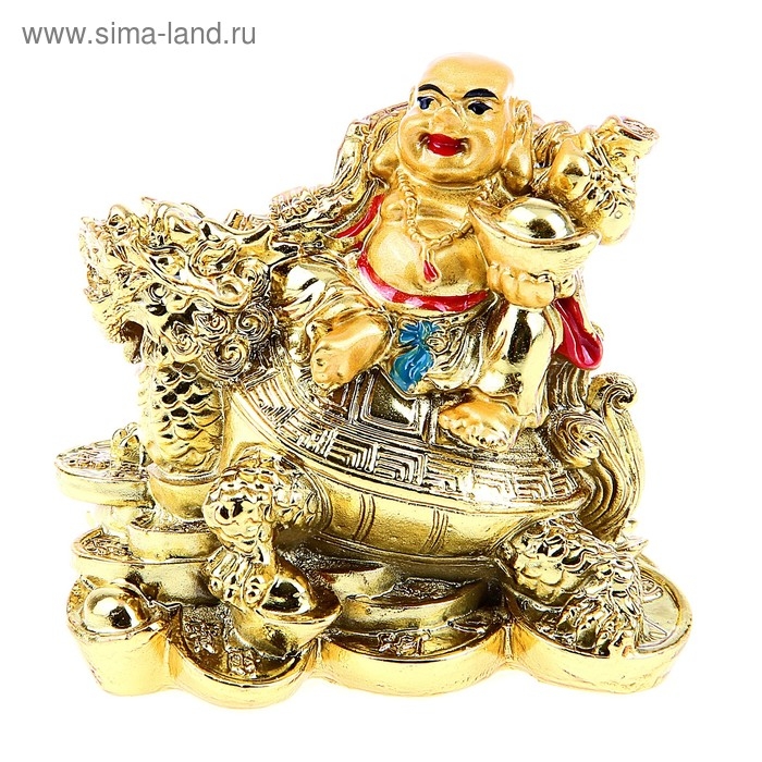 Нэцкэ золото "Хотей на драконочерепахе" 7,5 х 7,5 см