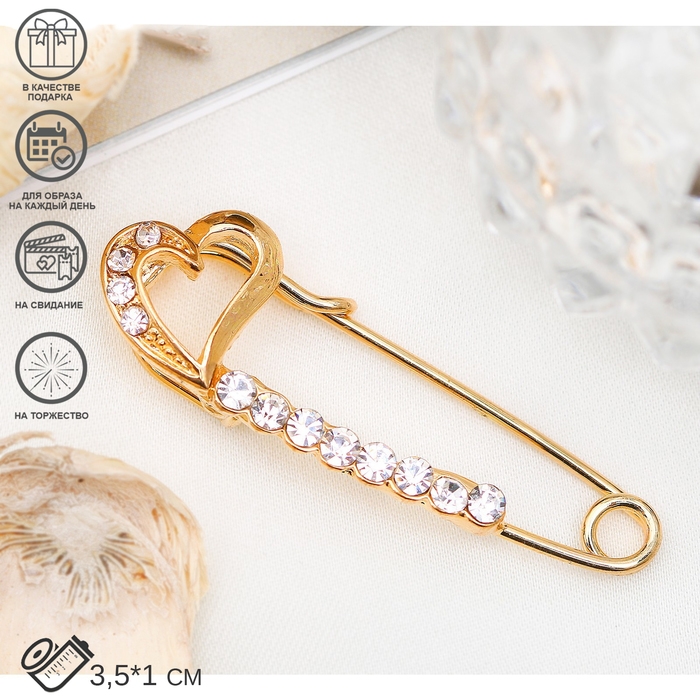 Булавка малая "Сердце", 3,5 см, цвет белый в золоте
