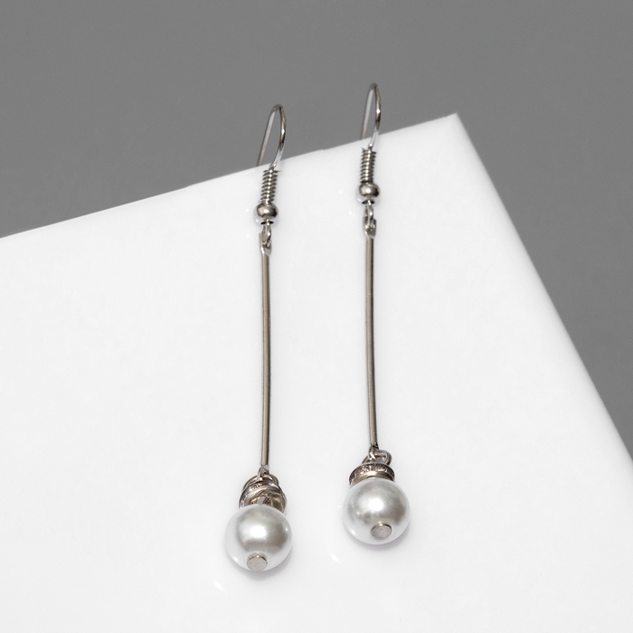 Серьги с жемчугом «Бусинки на палочке», цвет белый