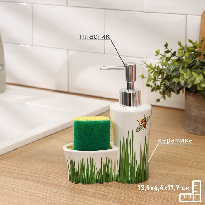 Дозатор для моющего средства с подставкой для губки Доляна «Травка», 240 мл