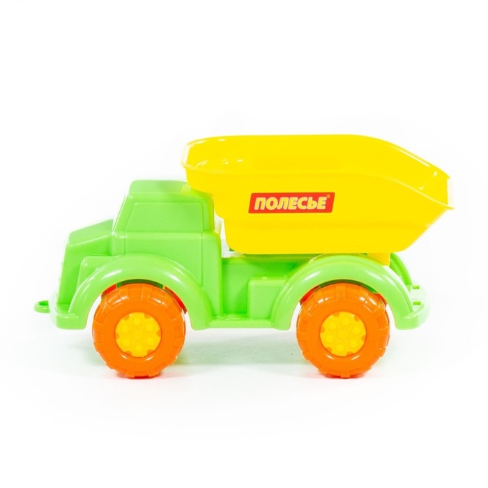 Самосвал ТМ «Полесье» порадует маленьких любителей спецтехники. Он оснащён вместительным кузовом, в который можно засыпать песок или камушки. Пластиковые колёса транспорта не поцарапают паркет или ламинат в квартире.