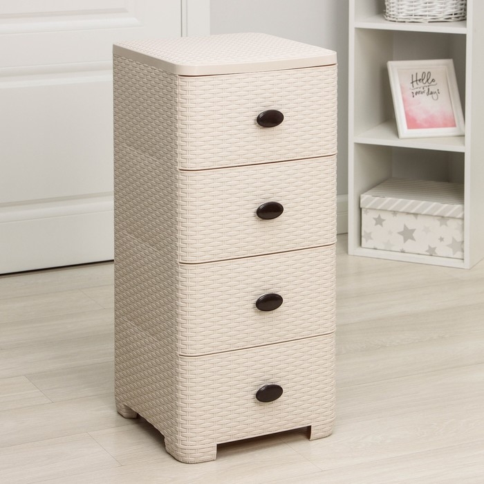 Комод 4-х секционный "Плетёнка", цвет слоновая кость