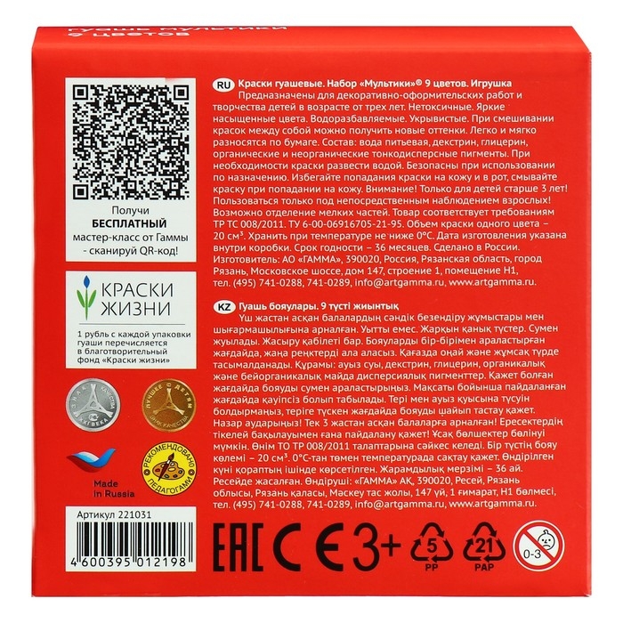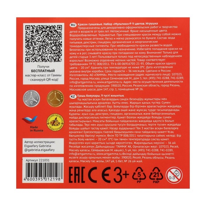 Гуашь 9 цветов "Гамма" "Мультики", 20 мл поможет вашему ребёнку создавать красивые яркие картинки, выдумывать невероятные сюжеты и воплощать их в реальность, развивая цветовое восприятие, зрительную память, воображение, мелкую моторику пальцев, ассоциативное, аналитическое и творческое мышление.