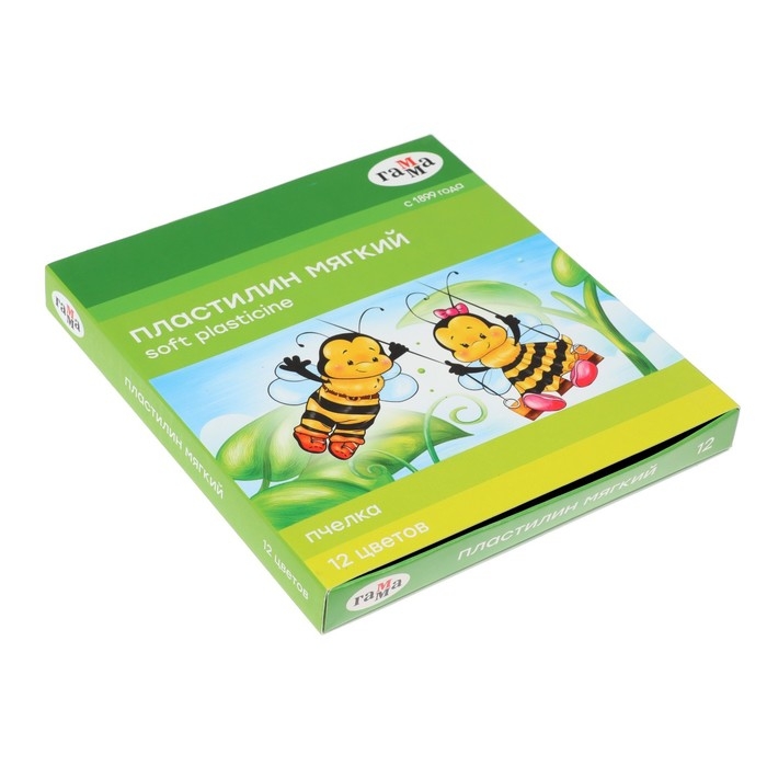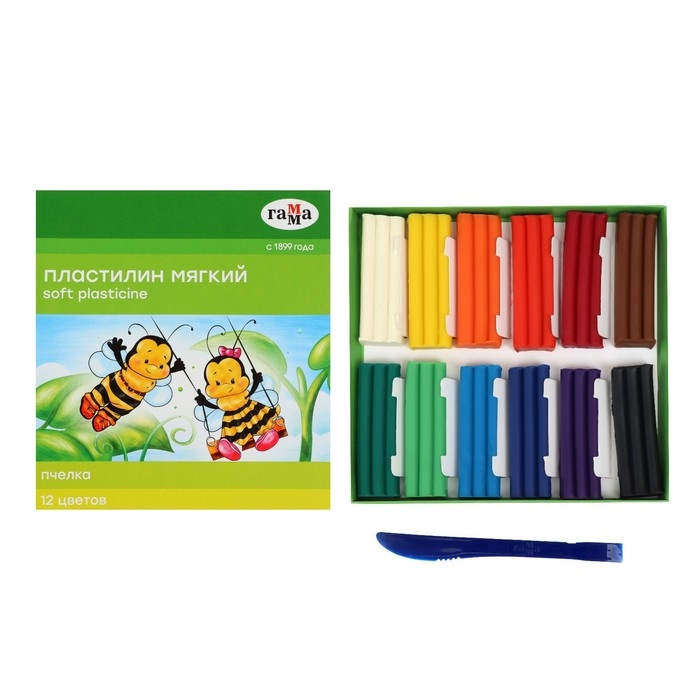 Пластилин мягкий (восковой), 12 цветов, 180 г, Гамма "Пчелка", со стеком