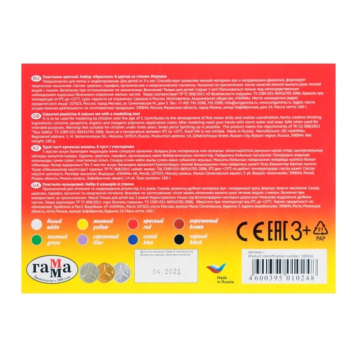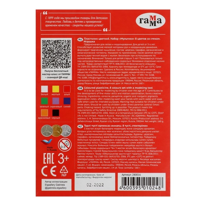 Пластилин серии "Мультики" разработан специально для детей от 6 до 9 лет с учетом рекомендаций педагогов.