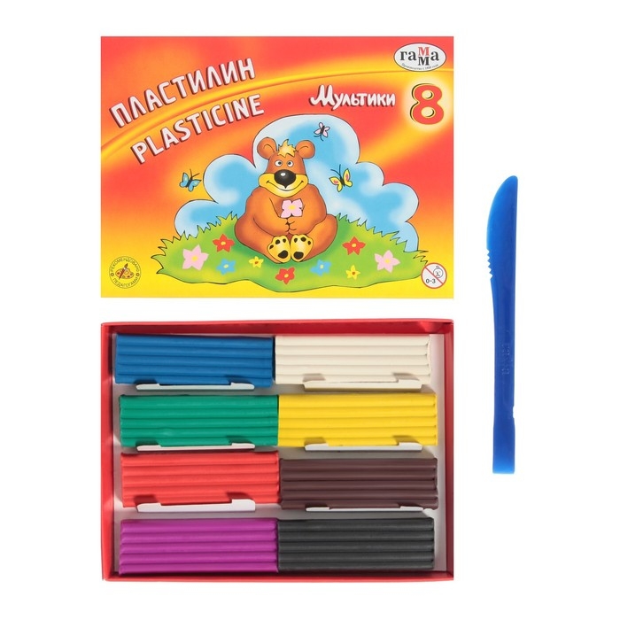 Пластилин 8 цветов 160 г, "Гамма" "Мультики", со стеком