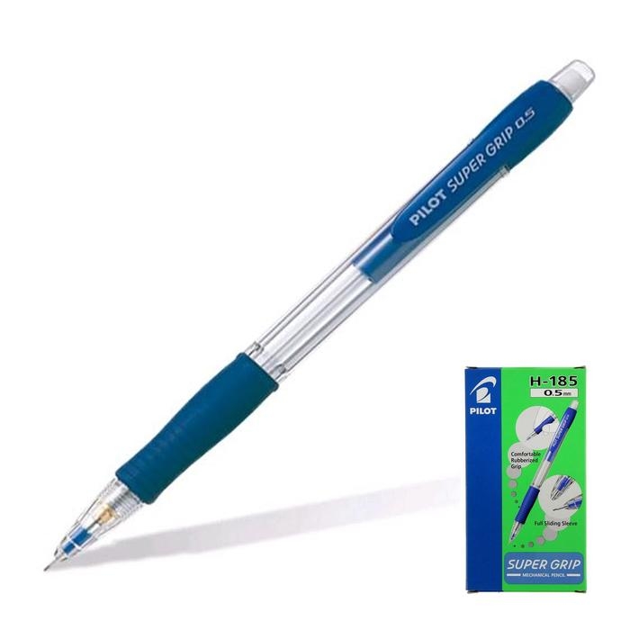 Карандаш механический Pilot H-185 (L) 0,5 мм выполнен в прозрачном корпусе с синими вставками. Обладает убирающимся цанговым механизмом, противоскользящей манжеткой и ластиком, прикрытым колпачком.
