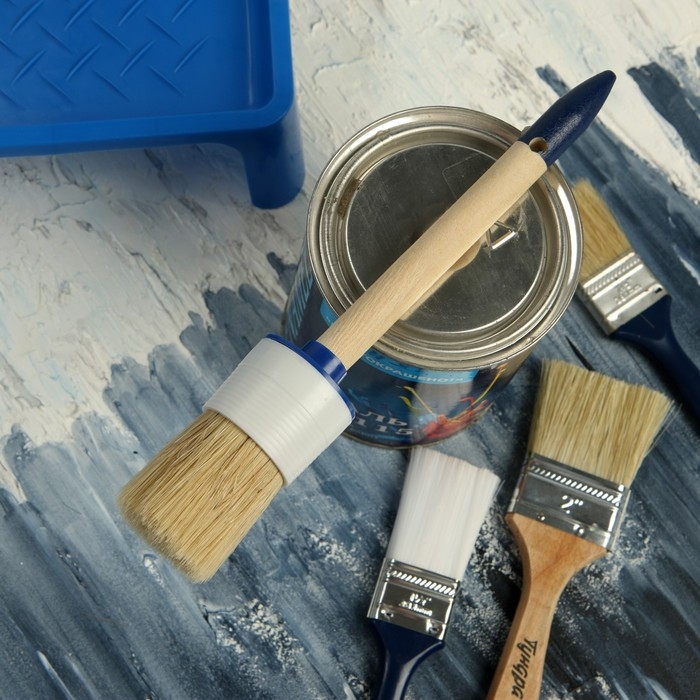 Круглая форма кисти подойдёт для окрашивания в труднодоступных местах, как углы, дверные проёмы и окна.