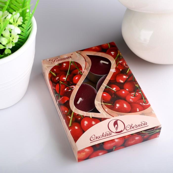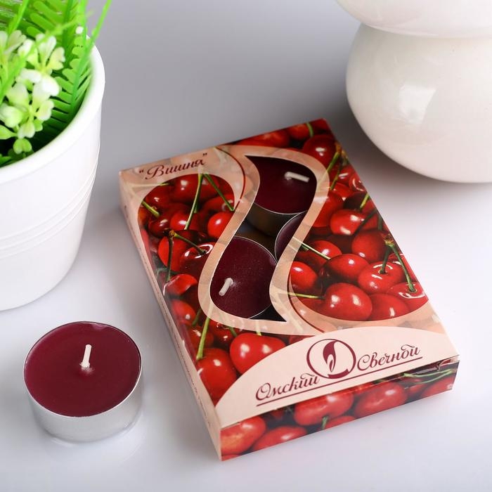 Набор чайных свечей ароматических "Вишня", 3,8х1,6 см, 3,5 ч, 12 г, 6 штук