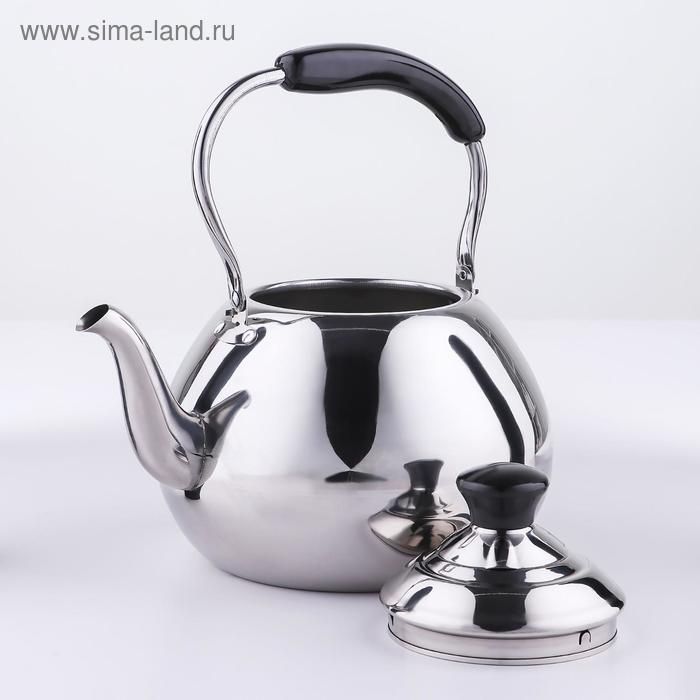 Чайник со свистком из нержавеющей стали Доляна «Чёрная ночь», 2 л, индукция, цвет хромированный