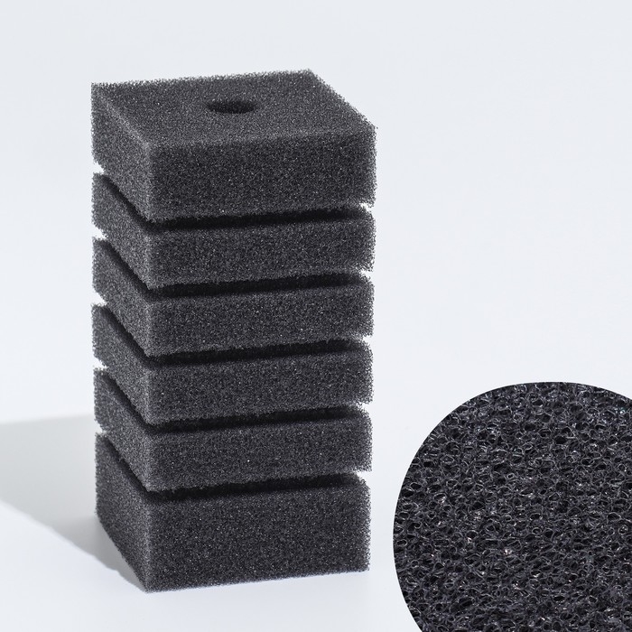 Губка прямоугольная для фильтра № 2, ретикулированная 30 PPI, 6 х 4 х 11 см, черная