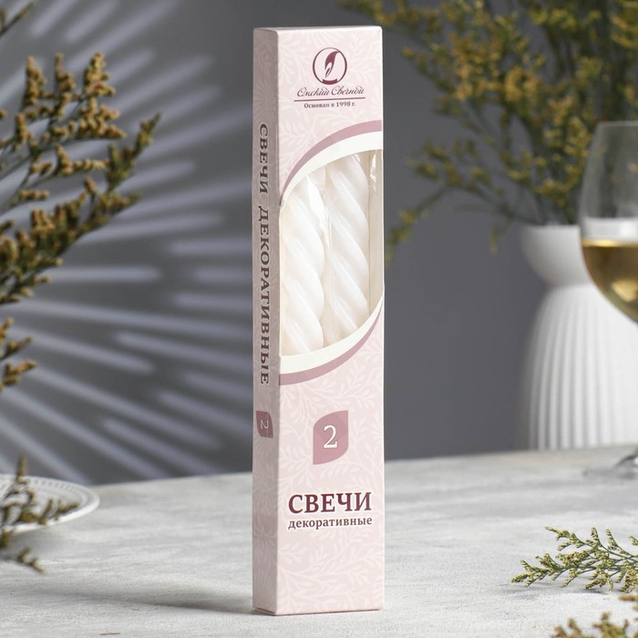 Набор свечей витых, 2,3х 24,5 см, 5 ч, 50 г, 2 штуки, белый