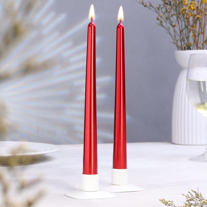 Набор свечей античных, 2,3х 24,5 см, 5 ч, 55 г, 2 штуки, бордо металлик