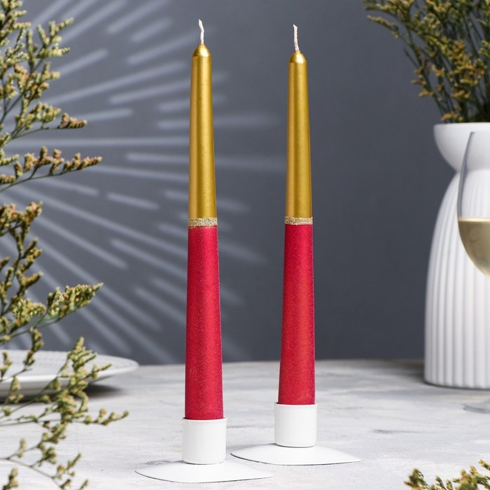 Набор свечей античных, 2,3х 24,5 см, 5 ч, 55 г, 2 штуки, золотисто-рубиновый
