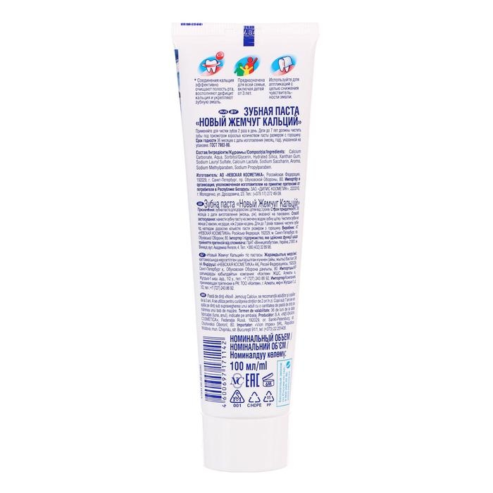 Зубная паста «Новый жемчуг», кальций, 100 мл