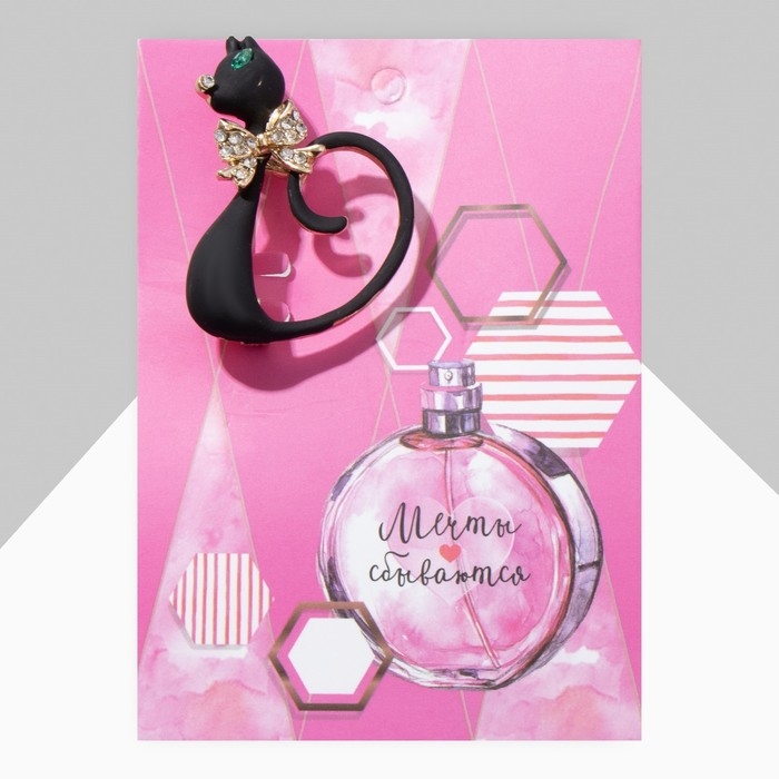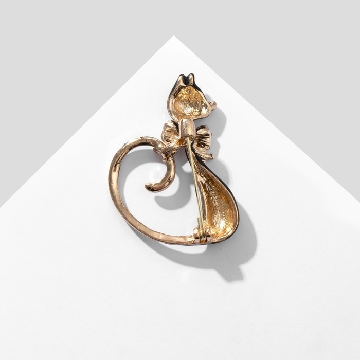 Брошь "Кошечка" загадочная, цвет чёрно-белый в золоте