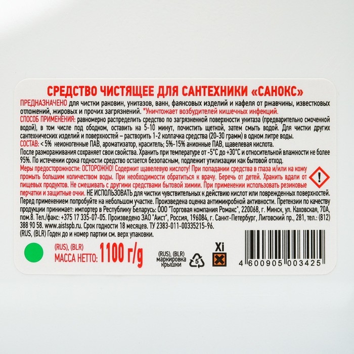 Чистящее средство для сантехники, предназначено для чистки раковин, унитазов, ванн, фаянсовых изделий и кафеля от ржавчины, известковых отложений, жировых и прочих загрязнений. Уничтожает возбудителей кишечной инфекцией.
