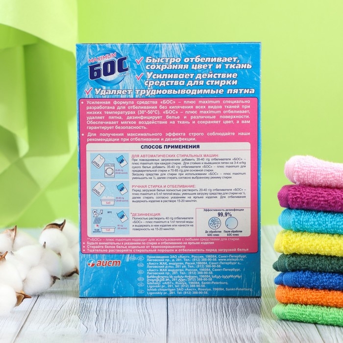 Применяйте его с моющими средствами при замачивании, кипячении и машинной стирке.
