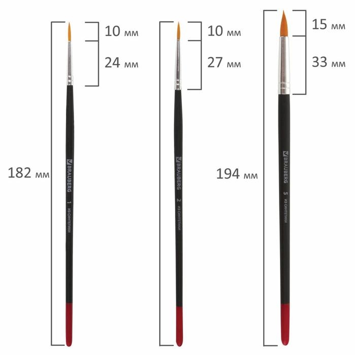 Высококачественный набор синтетических кистей BRAUBERG это отличная замена натуральным кистям. Подходят для работы с любыми видами красок.