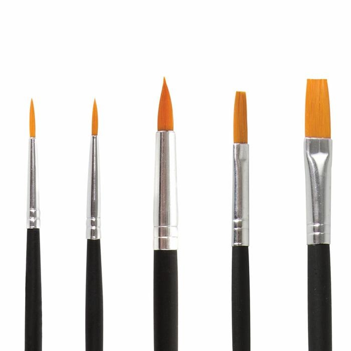 Кисти из синтетических волокон отлично впитывают и отдают краску, хорошо держат форму, долговечны и надежны. Кисти №1, 2 подходят для проработки мелких деталей. Кисти №5 и №8 позволят прорисовывать более крупные детали и наносить широкие мазки и линии. Деревянную крашеную рукоятку кисти удобно держать в руке.