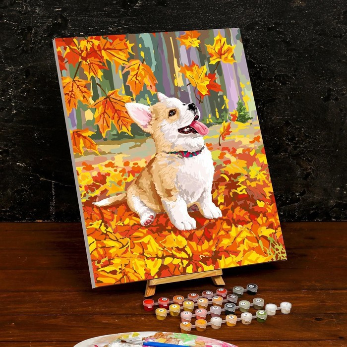 Картина по номерам на холсте с подрамником «Корги в осенней листве», 40 х 50 см понравится и детям, и взрослым.